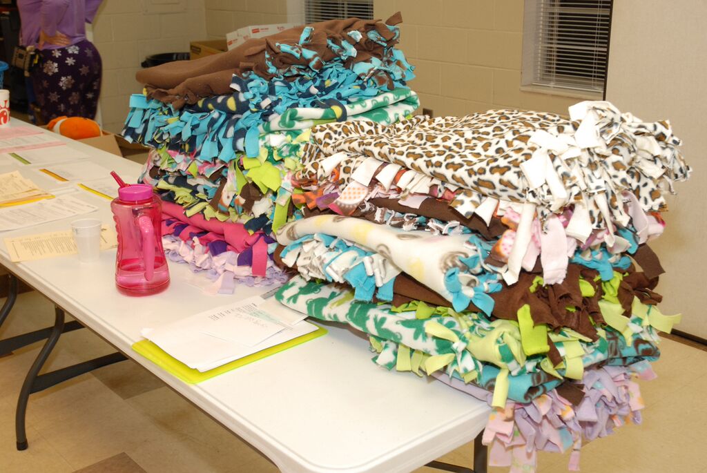 Also in April, a group of almost 35 Girl Scouts from the kudzu service unit gathered for a community service lock-in at a local church where the activities included making 25 no-sew or fleece-tie blankets for SNGA’s My Birthday Matters program.