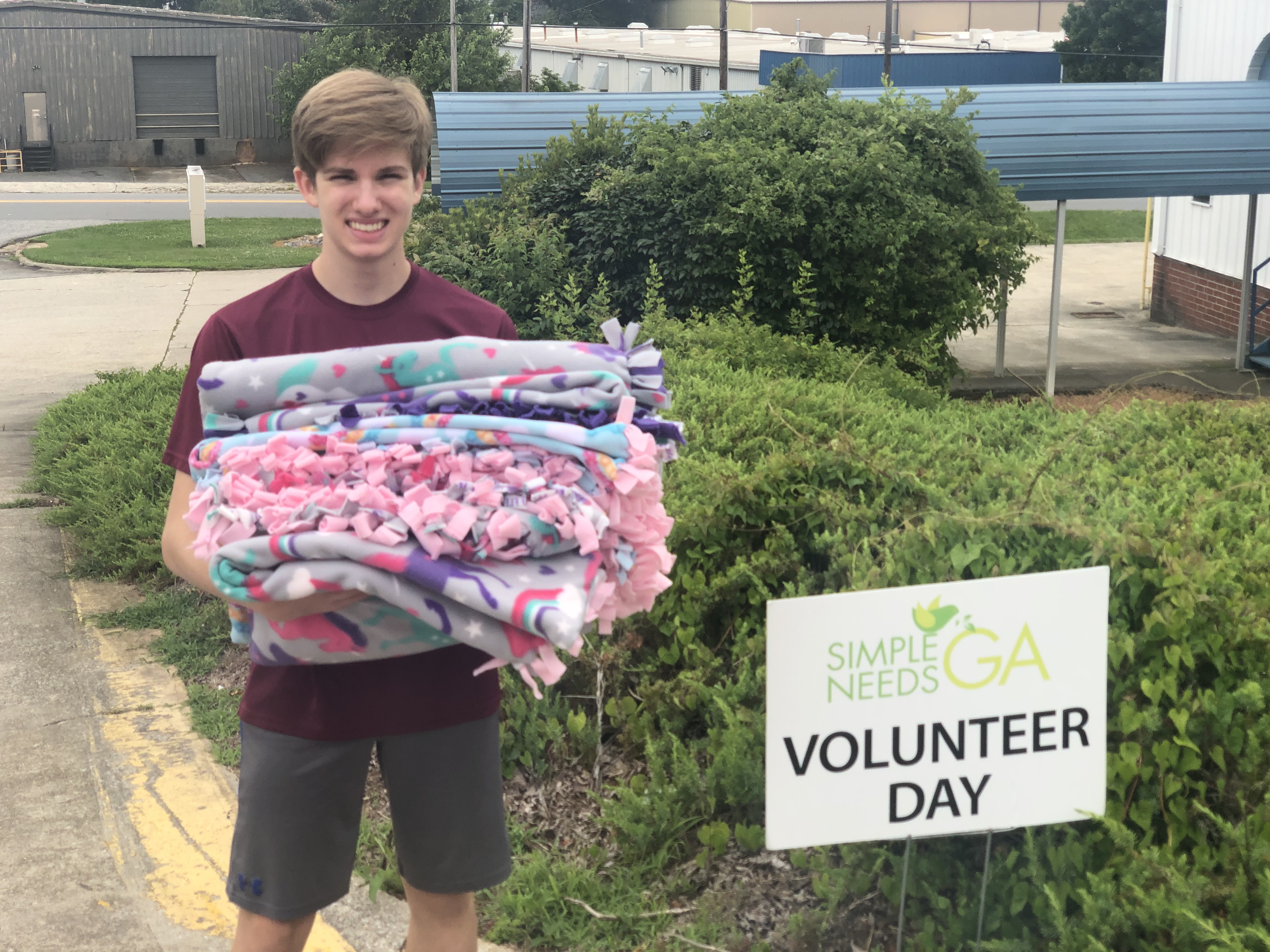 Lastly, Luke Unglo, a Boy Scout with Troop 356 and a student at Roswell High School, recently donated 9 fleece blankets to Simple Needs GA for use in our My Birthday Matters program. “Luke was working on his Citizenship in the Community merit badge and chose Simple Needs GA as a local organization to learn about and serve,” said his mom, Lynne.
